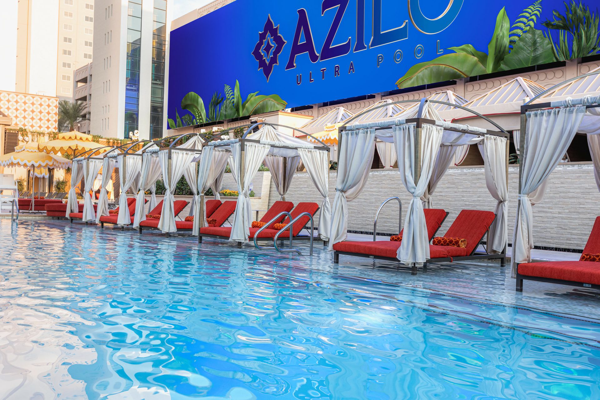AZILO at SAHARA is Las Vegas’ most immersive Ultra Pool, offering an intimate poolside experience, sexy Moroccan decor, lush greens, and an alluring atmosphere where music elevates the senses. AZILO seduces your heart and soul, submerging you into a beautiful desert sanctuary.