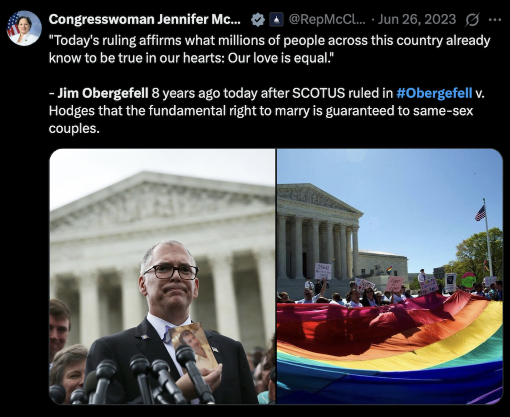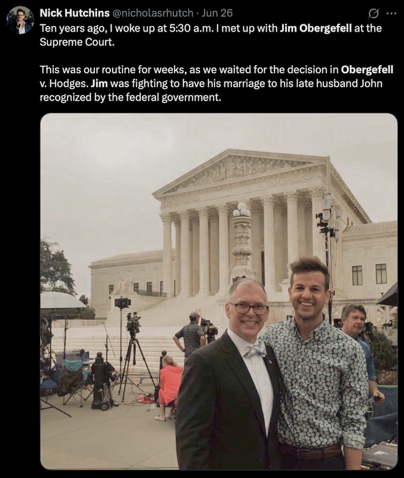 Jim Obergefell, the lead plaintiff in the Supreme Court case that legalized gay marriage nationwide, looks back on its impact 10 years later. pic.twitter.com/jT34s9GpMk
