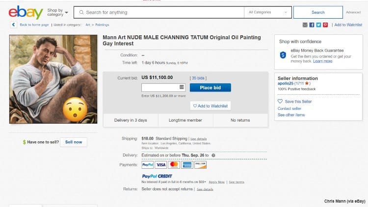 According to Pride.com, there’s buzz in the air after a portrait of Channing Tatum showing his testicles was sold on eBay.