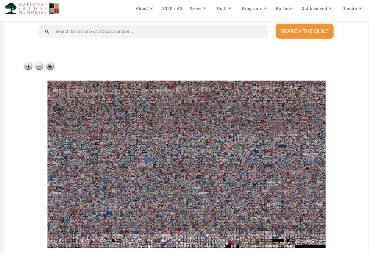 The interactive Quilt is just one of many projects launched by the National AIDS Memorial. One of those is 2020/40, a storytelling initiative that features stories of “the intimate human experience of AIDS during the 40 years of the pandemic – the lives lost, the survivors, the heroes.”