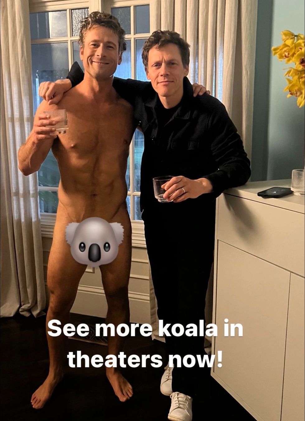‘Anyone but You’ director Will Gluck recently shared a photo of him and the actor on set via Instagram Story. They have their arms over each other’s shoulder, but the scene stealer is the fact that Powell is complete naked in the pic — his private part only covered with a koala emoji.