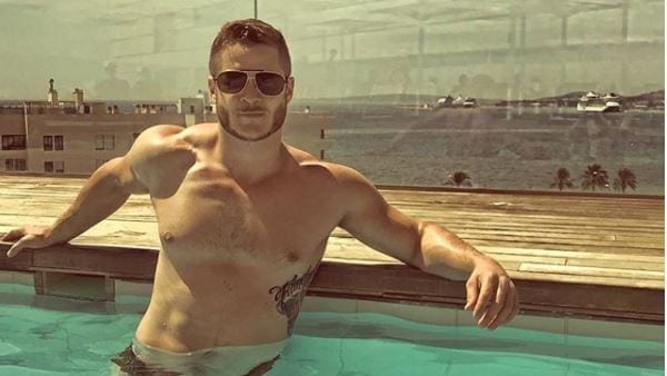 Reality star Austin Armacost is pretty used to wearing little to no clothing, as he has showcased his body in a myriad of ways dating all the way back to his days on The A List: New York. Now, he's scrubbing down with his adorable partner Darren Banks at a shower located inside the business lounge of Air France.