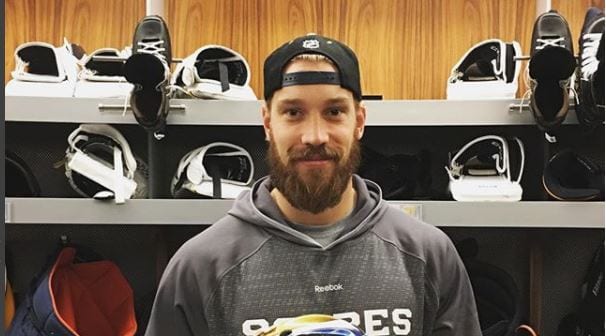 The very hunky goalie (who is married with two kids) wears a rainbow flag decal on the back of his goalie mask. He has also advocated for LGBT people in sports.