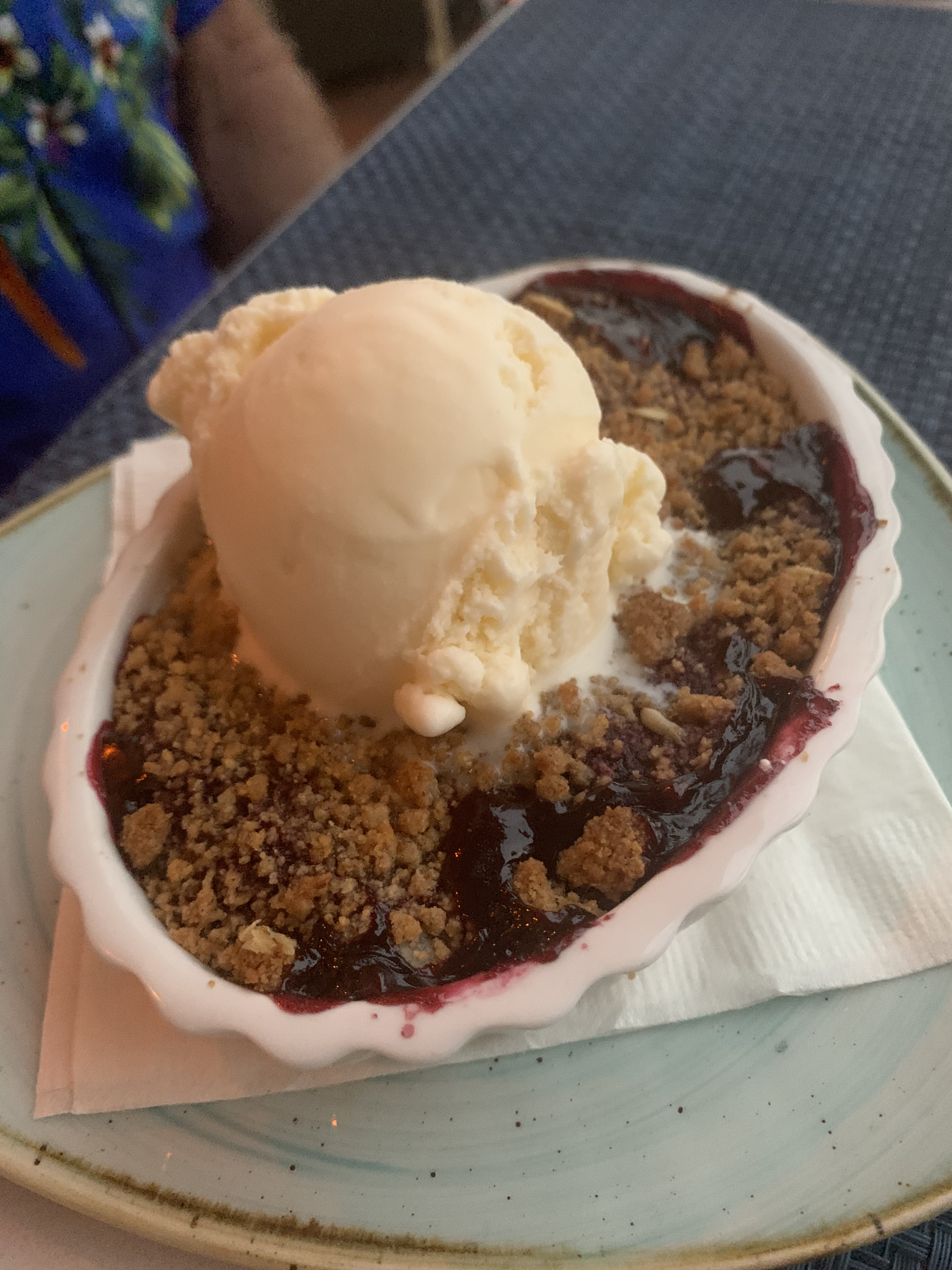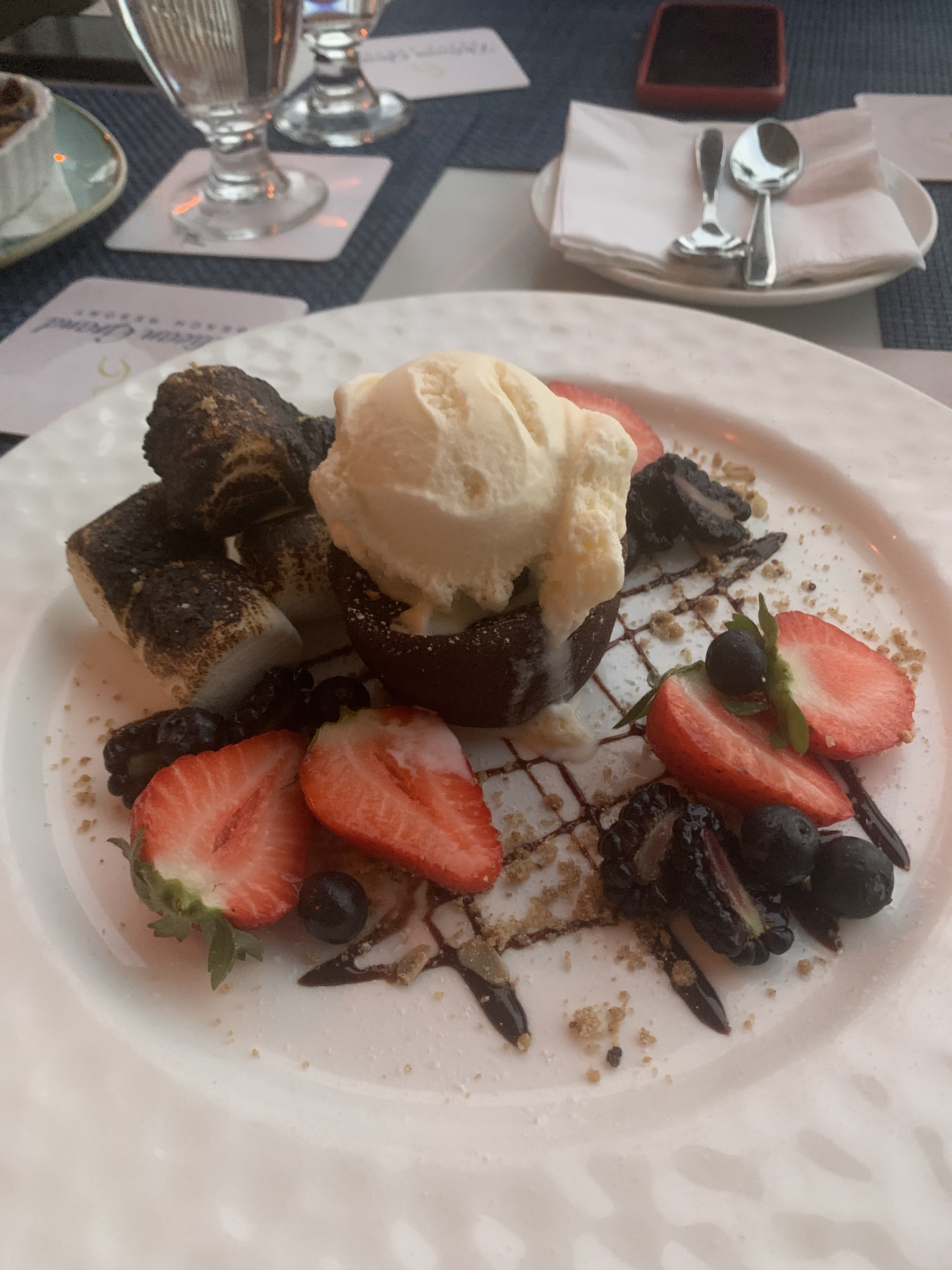 But we were staying midweek and decided to treat ourselves to a culinary experience at OCEAN2000. Carlos took care of all of our needs. His attentiveness, humor, and smile, kept us happy throughout the meal. Our recommendations are the Candied Nueske’s Double-Cut Bacon, Roasted Beets Salad, Cedar Plank Salmon, 8 oz. Wagyu Filet of Beef. The desserts were radiant and fit our likings to tee with a mixed berry and apple tart for one and a lava cake accompanied by elements of s’mores for the second. The toasted marshmallows were divine.Â