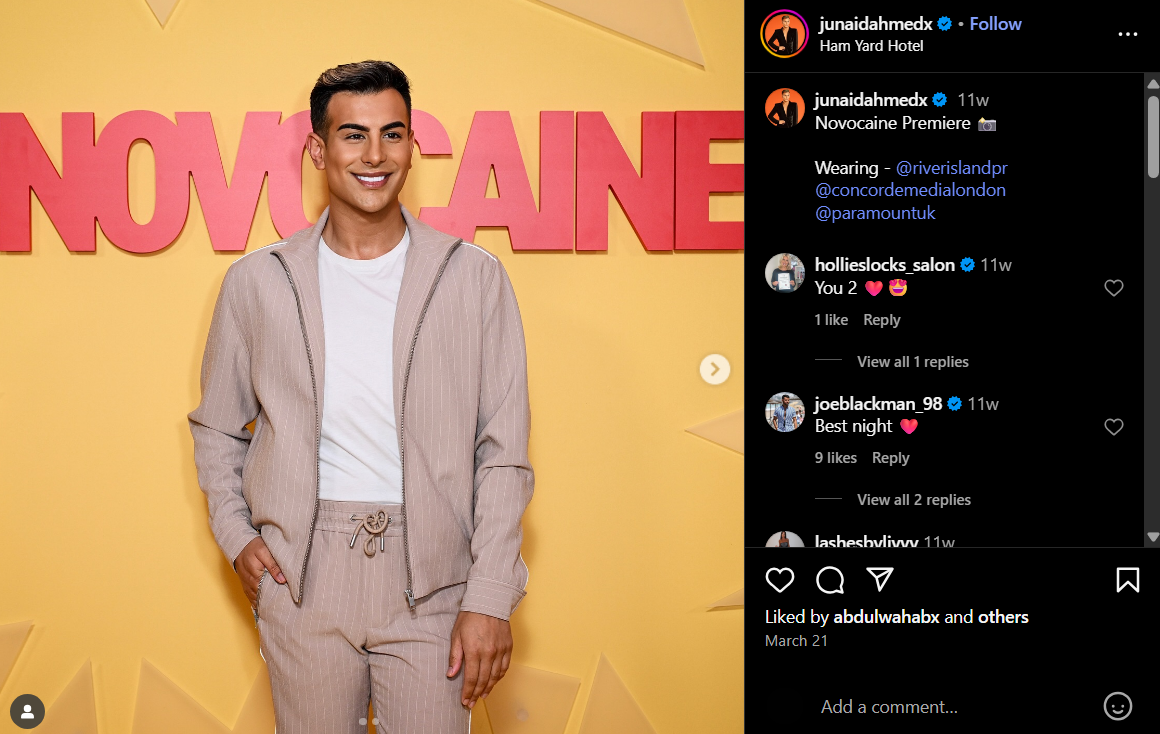 And he is. Junaid recently moved into a £1 million Essex home with boyfriend Joe Blackman (yes, the same Joe who once dated Junaid’s ex-BFF Harry Derbridge—messy, we know), and they’re even thinking about a Bollywood-style wedding someday. Expect sequins, drama, and at least three outfit changes.