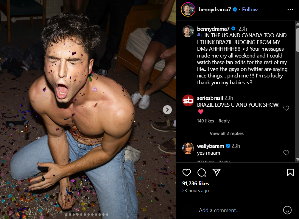 Let’s get one thing straight — or rather, gloriously not straight — Benito Skinner is not here to play it safe. He’s here to make us laugh, cry, and yes, scream into the void about the state of queer television. With his new series Overcompensating lighting up Prime Video like a glitter bomb at a frat party, Skinner is showing us just how funny, frustrating, and deeply real the closeted college experience can be.