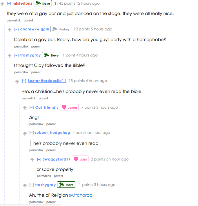 Many of the conversations on Reddit are flagging this night out at gay bars as a little hypocritical.