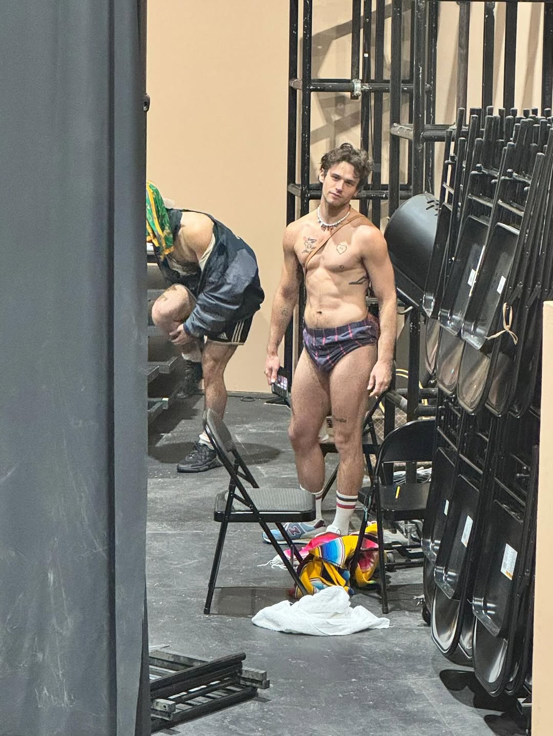 In a new Instagram post, Brandon shared a cheeky photo featuring everything but what your imagination is probably filling in right now. Draped in theater lights and a barely-there pair of boxer shorts bunched up his thighs, Flynn gave us just enough view to short-circuit the comments section—and we’re not complaining.