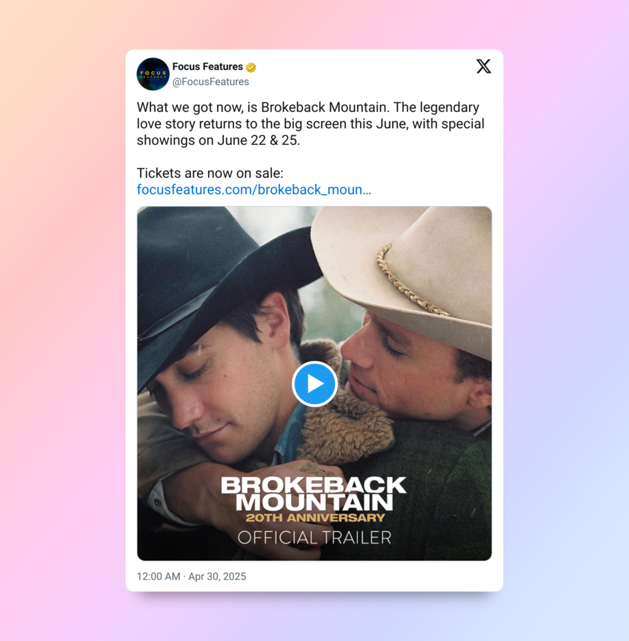Film lovers and hopeless romantics, saddle up— because Brokeback Mountain, Ang Lee’s genre-defining, heartstring-shredding, quietly revolutionary film, is riding back into theaters for its 20th anniversary this June.
