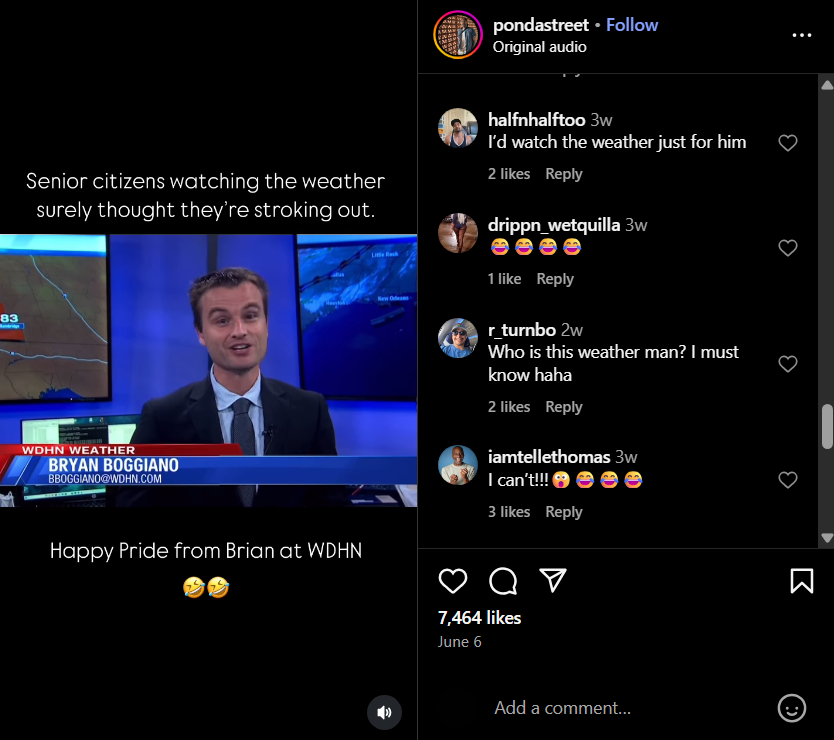 WDHN meteorologist Bryan Boggiano just turned a routine downpour warning into a legendary moment of queer joy — and the internet is soaking it up. In a now-viral video, Bryan looks directly into the camera and serves this instant-classic line with the kind of deadpan drama that could rival any drag queen in a Weather Channel fantasy challenge: