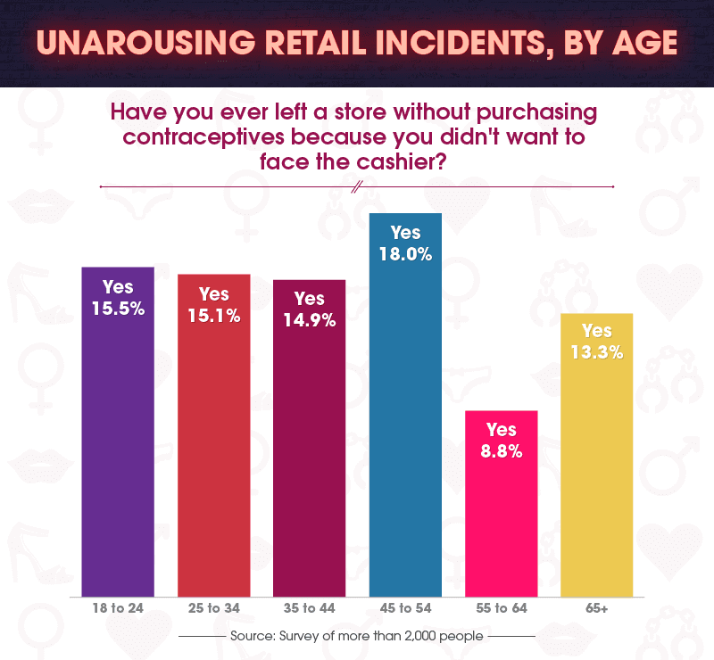 - Middle aged people (45 to 54) are most likely to go without contraception to avoid facing the cashier.