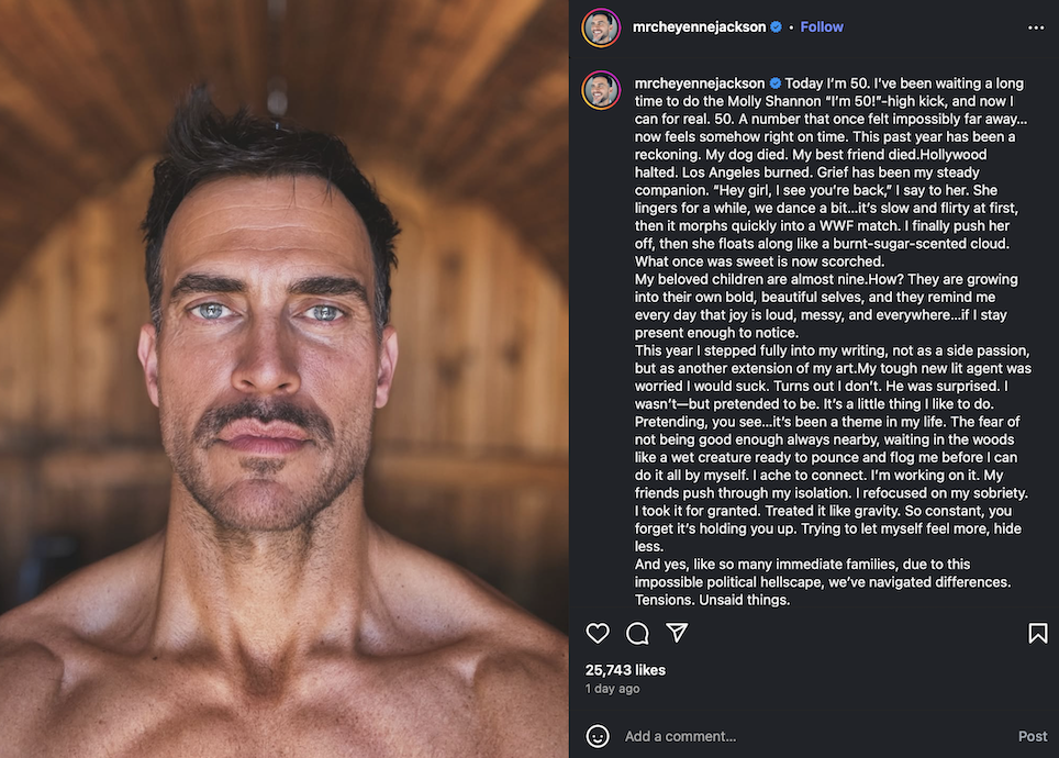 Pop the champagne, cue the Broadway overture, and dim the lights—because Cheyenne Jackson just turned 50, and he’s proving that aging can be just as sexy as a Fire Island sunset. The actor-singer-dreamboat took to Instagram with a high kick and a heartfelt post, channeling his inner Zeus and reminding us all that yes, he’s 50, and yes, he can still kick and stretch (and thirst-trap) with the best of them.