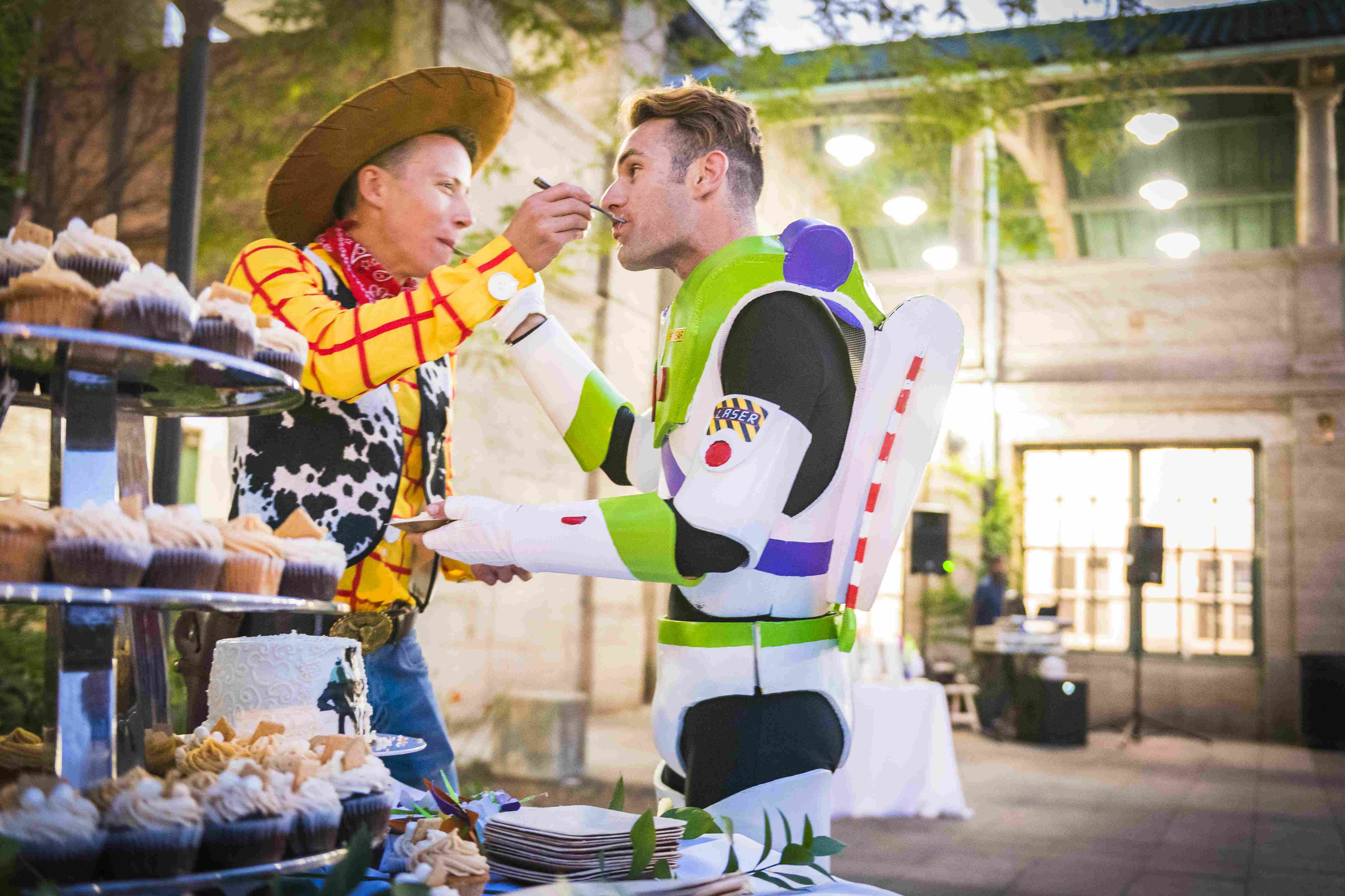Garrett Smith and Jason Bitner were engaged at Disneyland two years ago after a beautiful proposal. This week, the two tied the knot as their favorite Disney characters: Buzz Lightyear and Woody.