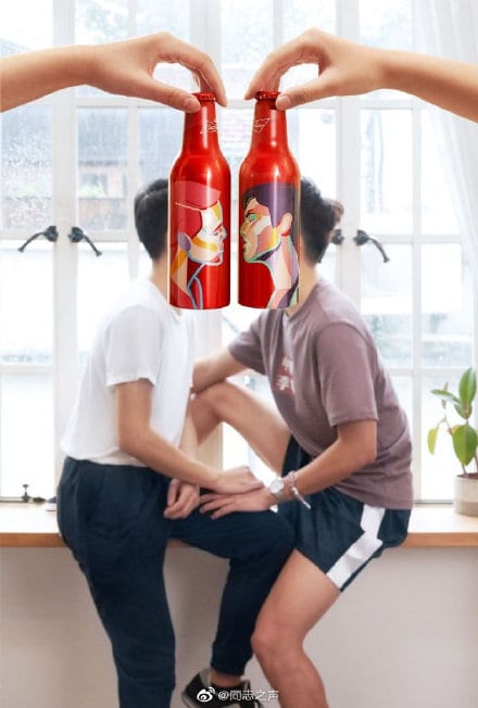 Again, it appears that this was Budweiser’s intention all along. The Gay Voice, a popular account on Weibo that shares LGBTQ news with 1.5 million followers, spoke to Budwiser’s PR director Guō Wǎnpíng. Guo says the company intended to take advantage of this holiday to covertly share the message of love is love. The company’s Weibo page even started sharing these photos after they started trending.