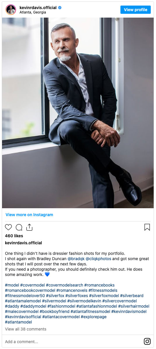 Cover model Kevin Davis showed up in “business daddy” mode: