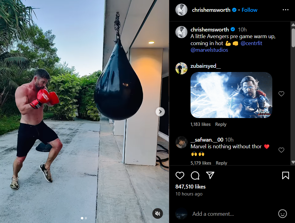In preparation for Avengers: Doomsday (a title that already sounds like the name of an LGBTQ+ club night), Hemsworth took to Instagram to share a glimpse of his “pre game warm up,” captioning the clip: “A little Avengers pre game warm up, coming in hot 💪👊.” And yes, Chris, it’s not just you that’s coming in hot.