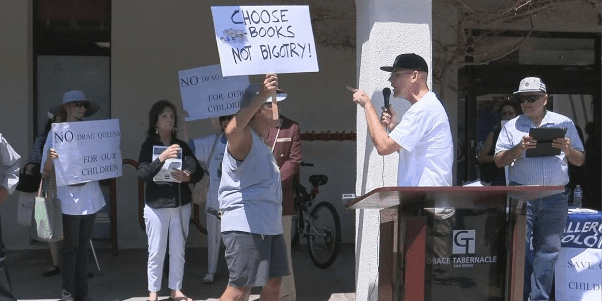 KTLA reported live from outside the Chula Vista Library where protestors from conservative group MassResistance has rallied and called for the program’s cancellation all week.
