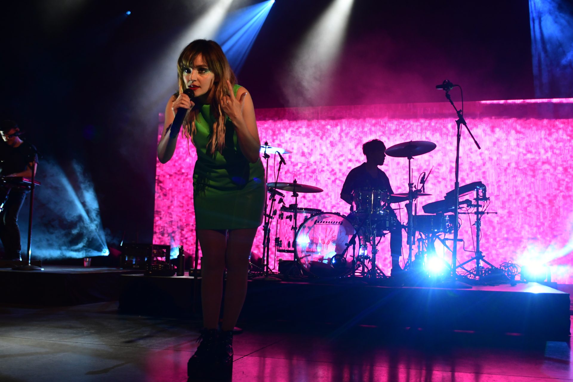 Opening for CHVRCHES was a band called Cafune (it actually means physical intimacy), I would describe them as a not quite shoegazing version of Camera Obscura. They have a great vibe and got everyone dancing. This show had sold out months ago, and this was their first “Tour” and they did have a great sound. With a short set of 9 songs, they got everyone in the mood for the main act. I should expect to see them headlining here shortly. They talked about this being their first outdoor gig on the tour, and that they feel like they made it if they play an outdoor venue like this.