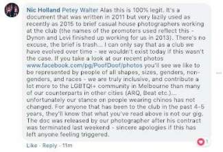 Wow POOF DOOF, personally I find this absolutely disgraceful, especially for a “Queer” venue, supporter, event etc. It’s all well and good to say that this I s 7+ years old and that you don’t stand by these virtues, but 7+ years ago Australia LGBTQ+ people were still fighting for equality, and you have the nerve to create this memo(even if it was internal, I wonder what else was for internal eyes only) that literally classes certain genders, identities and personal images as unworthy, subpar and “boring & repetitive” which in turn divides the very people you claim to support and identify as. Shame on you. Damage done.