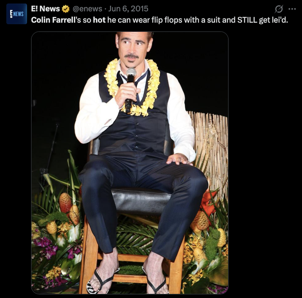 Known for everything from brooding Oscar-nominated performances to playing a delightfully chaotic Penguin, Colin has long since proven he can do it all. And apparently, “texting while hot in micro shorts” is now part of that list.