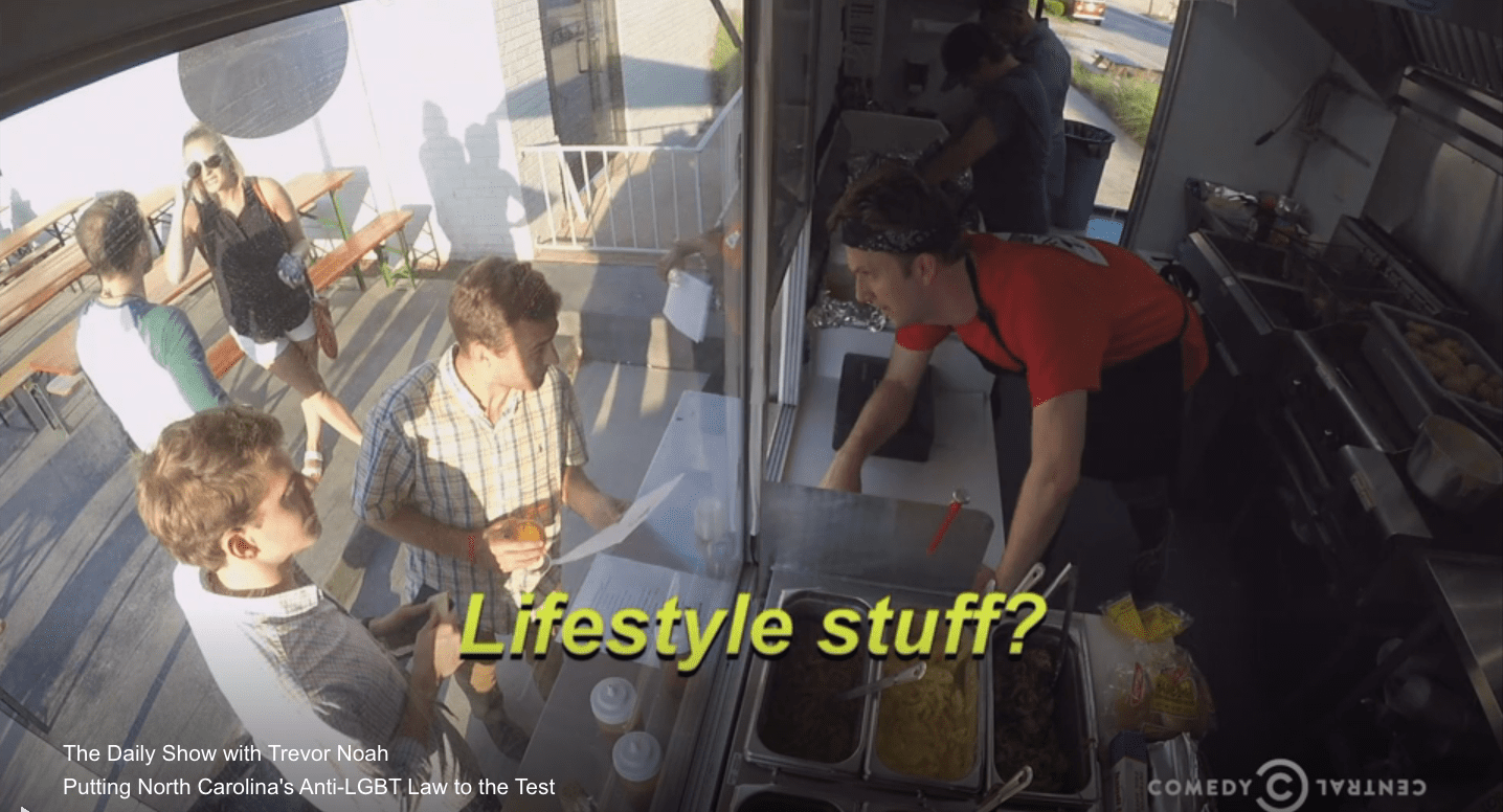 Roy Wood Jr. and Jordan Klepper show what North Carolina's discriminatory HB2 law looks like when a business puts it into effect.