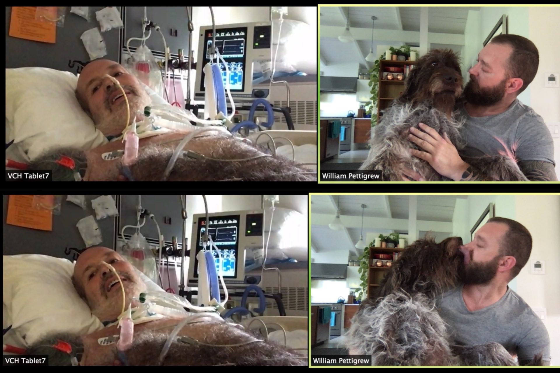 The only way of communicating with Greg regularly (once his cognition improved) was a daily Zoom Meeting at 6pm. Prior to that, they would point the video screen at him when he was either unconscious or semi-conscious and he might raise an eyebrow or smile with his eyes when he was awake, but sometimes those calls were harder than not seeing him at all.Â
