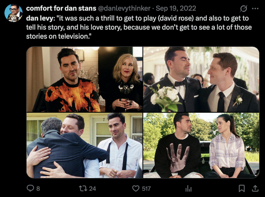 dan levy: “i’ve never had to prove myself, i’ve never had to explain myself. and that i feel like, fundamentally, is the support that every father needs to give their son. particularly fathers and sons where the son is a gay or queer person.” pic.twitter.com/mXISCQct8K