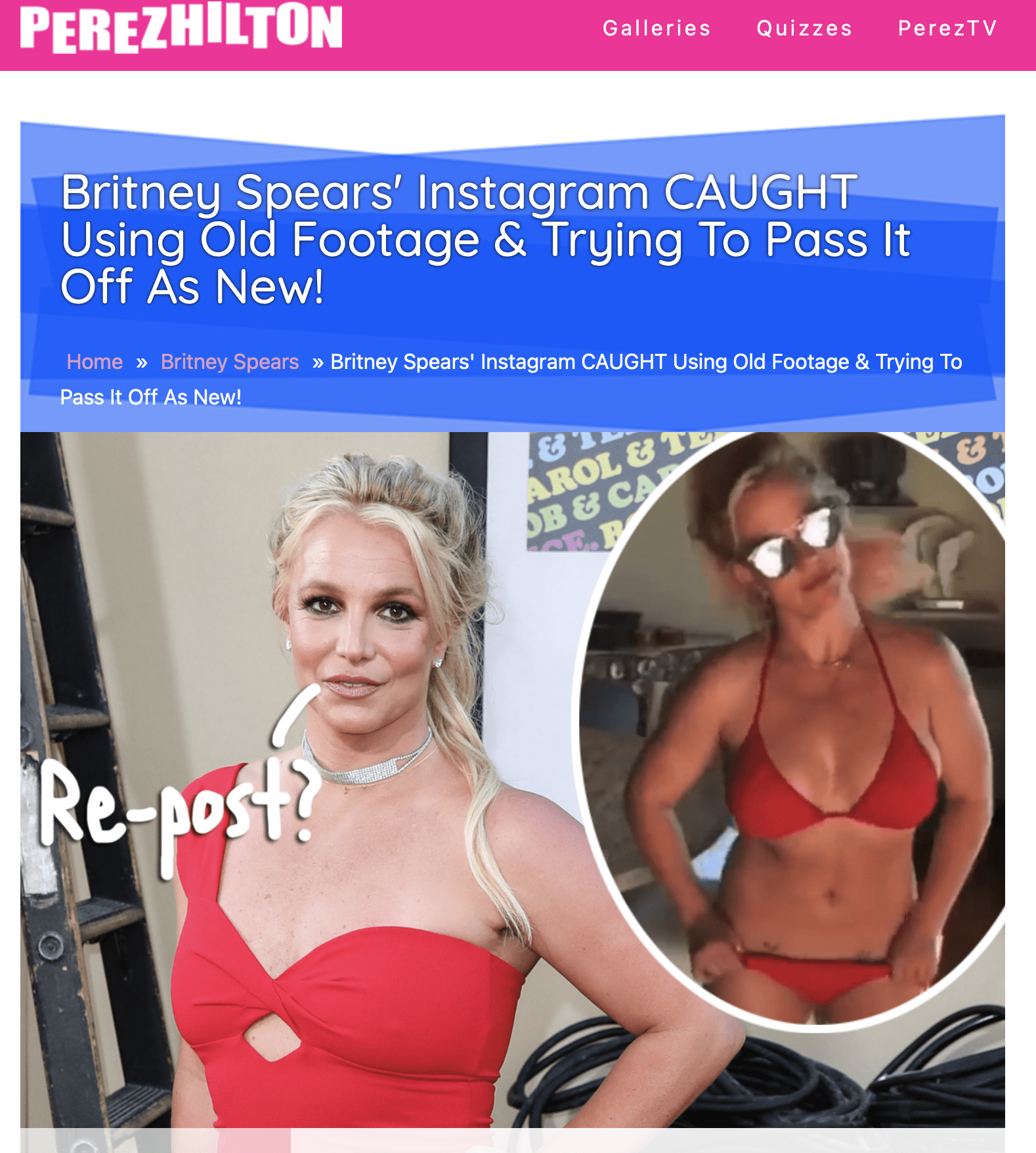 But then, last night Perez proved me wrong. He was up to his vulturous tactics again after a bizarre story broke about Britney allegedly passing off a video from a past Hawaii vacation as a current vacation video. The story is that she’s recycling old vacation footage as new in an attempt to show she’s doing alright, when she’s not. Fans speculate it’s a ploy from the Britney camp to show she was ok after her harrowing testimony to the courts.