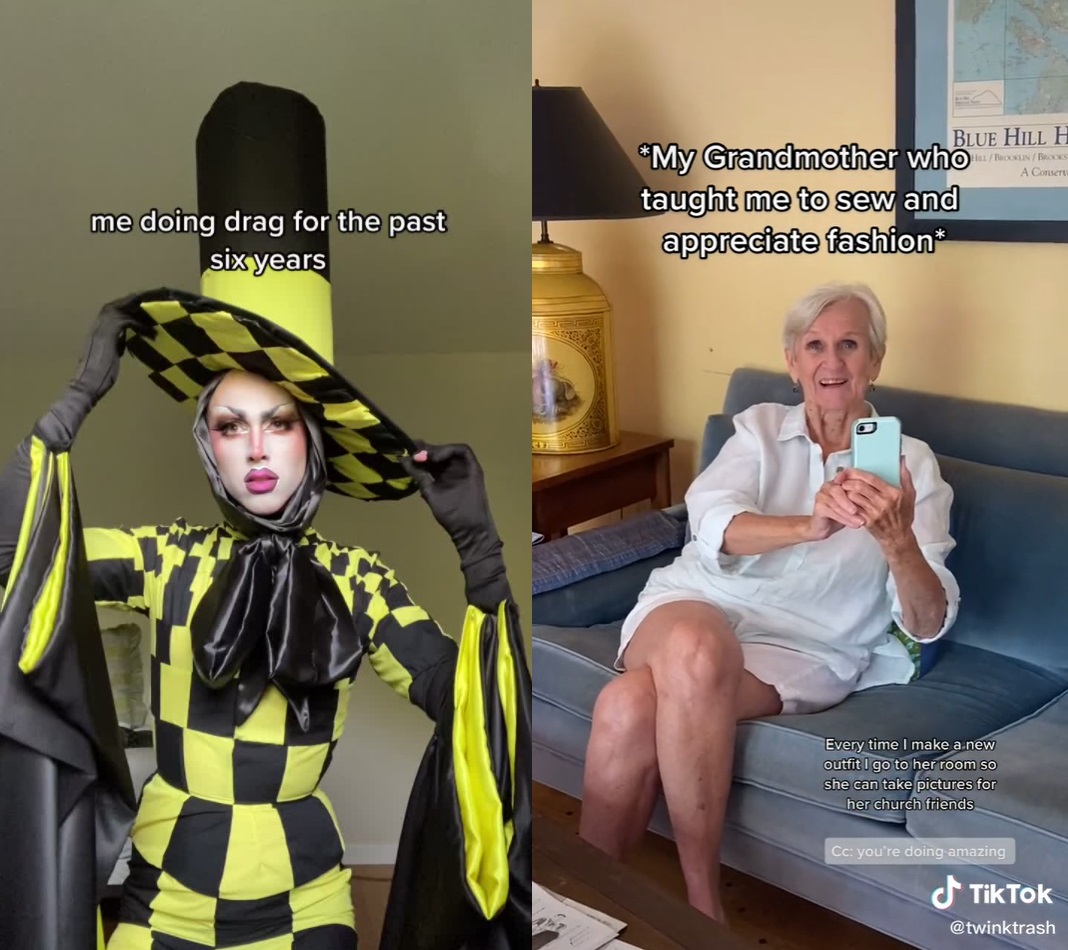 TikTok user and drag performer TwinkTrash posted a video of her grandmother on the social media platform. The video, which has garnered over a million views and likes, shows the queen in a stunning costume. She then cuts the video to her grandmother and reveals it was her that taught the queen how to sew.