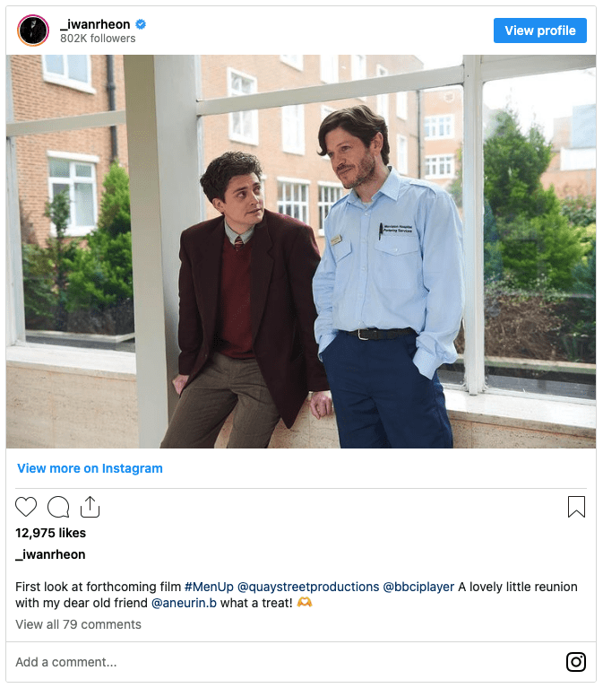 Stars and real-life friends Iwan Rheon & Aneurin Barnard ended up sharing some very intimate time while filming Men Up. Particularly, Aneurin had to measure Iwan’s penis during a consultation scene in the movie.