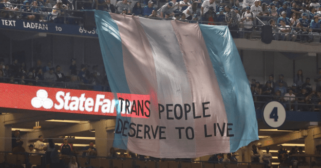 If you were one of the millions who watched Game 5 of the World Series, there was something going on behind the scenes that you didn’t catch. Those who were present at Dodger Stadium on Sunday night were witness to an action that was louder than the fans. By now you might already have seen the internet blowing up with photos of the famous Trans flag that was unfurled during the game with the words “TRANS PEOPLE DESERVE TO LIVE” painted across. The demonstration was an act of visibility by Los Angeles-based TransLatin@ Coalition, a group that advocates for the specific needs of the Trans Latin@ community and plans strategies that improve their quality of life.