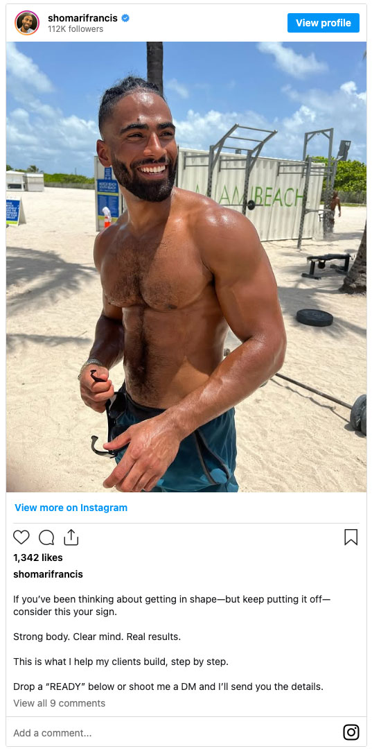 Shomari Francis was all smiles at the beach: