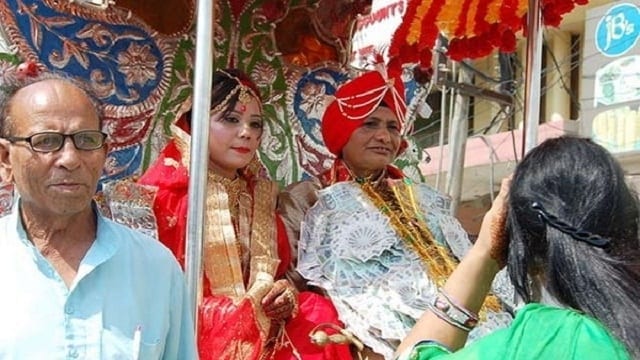 In India under Section 377 of the Indian Penal Code homosexuality is considered a criminal offense, along with sexual activities "against the order of nature." Manjit Sandhu, who works as a warden for the state government made a profound statement against this Code when she married her 27-year-old partner at a temple in Pucca Bagh, Jalandhar.