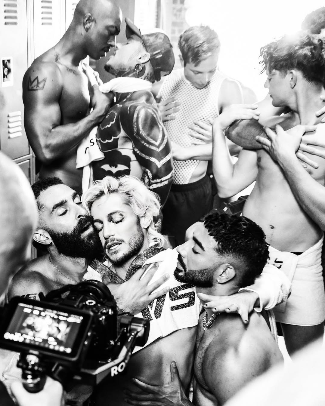 The video is a delicious fever dream of flirtation and fantasy, featuring Frankie making out with a very hot mystery man (we’re still recovering, honestly) while surrounded by gorgeous guys who are clearly ready to wait their turn. It’s giving bold, it’s giving glam, it’s giving pop star on his glitter throne, and we are so here for it.