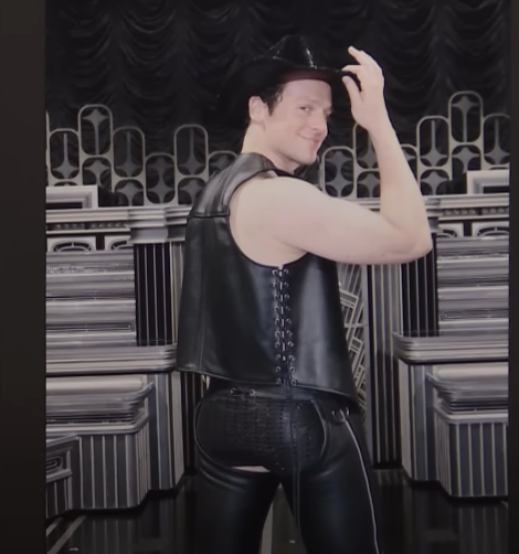 And naturally, props were paid to the NYC queer gear mecca, The Leather Man. “They got me baby’s first chaps,” Groff grinned. Fallon, still processing, asked, “These are called ‘baby’s first chaps?’”