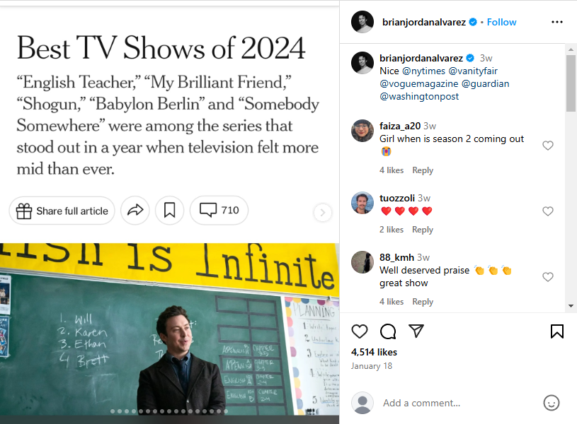 Critics were loving it too. English Teacher snagged four Independent Spirit Award nominations, including Best New Scripted Series. And if there was an award for making us laugh while we simultaneously cringe with secondhand embarrassment, the show would have swept.