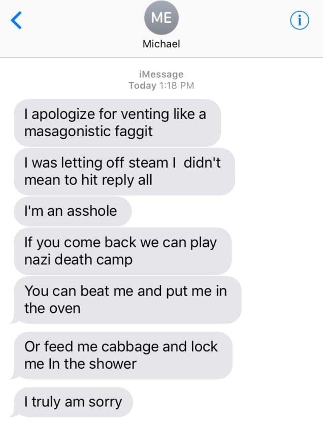 "The response from [Einfeld] shouldn’t have surprised me considering my past exchanges with him. He could be kind of terrible. However, sometimes he was actually really cool and funny and nice. He even bought me a really hilarious Jurassic Park Christmas sweater. No one is bad constantly. The point of this article isn't to humanize [Einfeld] for you, but that's the truth, he isn’t all bad. We bonded over our love of Broadway Musicals and had some really good laughs. And that's why it's harder to get out of these situations. It is similar to feeling trapped with a physically abusive partner or family member. I’ve also been in that position and it would have been a lot easier to leave quickly if they were only awful. But no one is. That is the truly sad thing about leaving an abusive situation, because you are leaving someone who is sometimes human and good. Good qualities aside, a majority of the time he was screaming terrific things like the N word at the top of his lungs while describing black clients who were frustrating him. He would call his employees “f***ing retards,” and scream he is never friends with women. Then it would slowly dawn upon him that he maybe took things a little too far, and he would say, “I was just joking.”