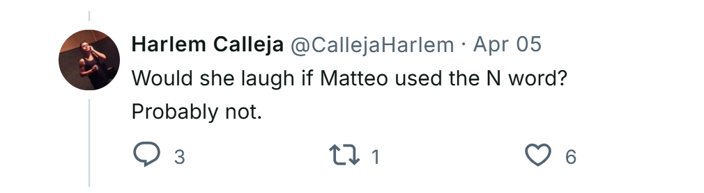 Would you be asking if it was wrong if Matteo used the N word to Gail?