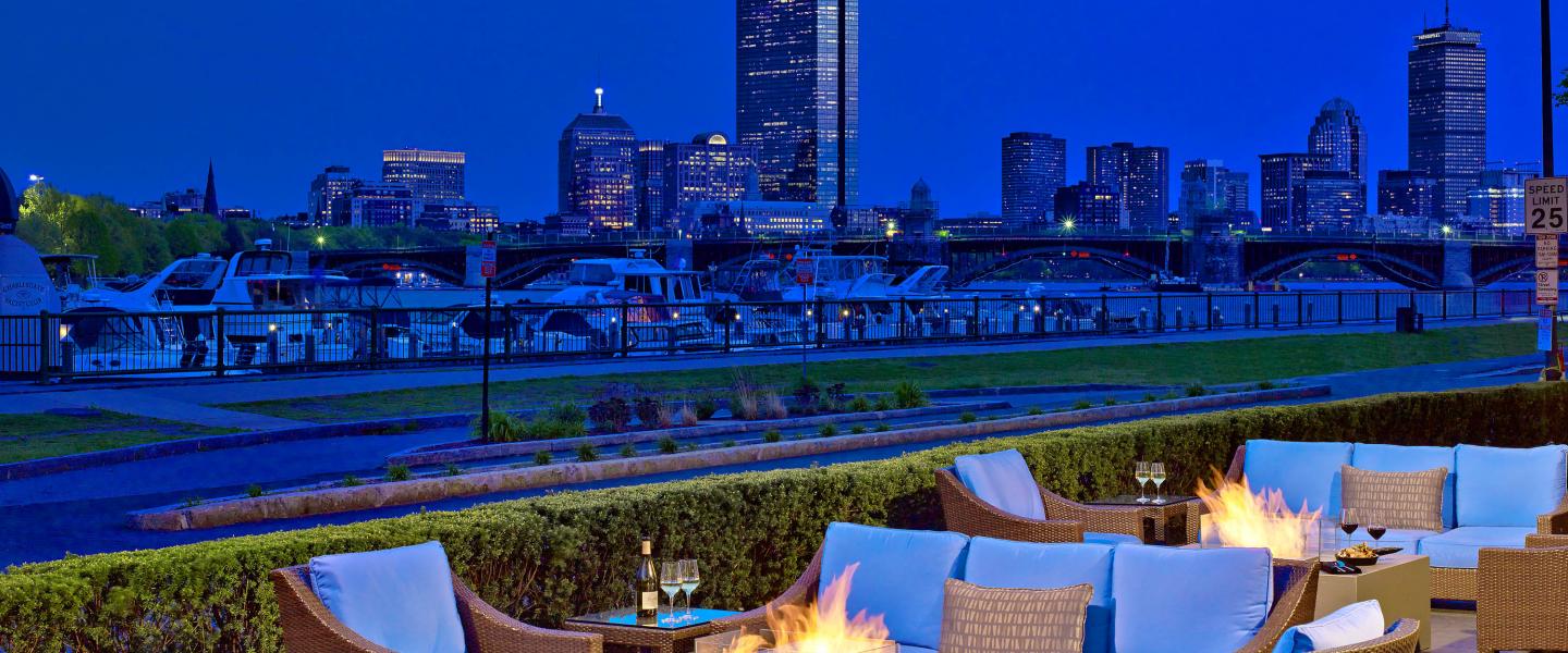 Riverfront Terrace overlooking the Charles River and Boston Skyline
