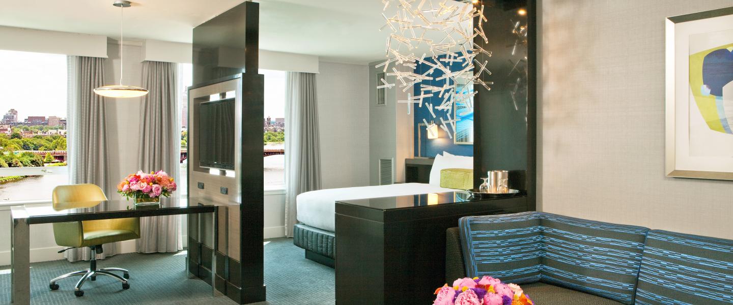 One of the rooms at The Royal Sonesta Boston overlooking the Charles River