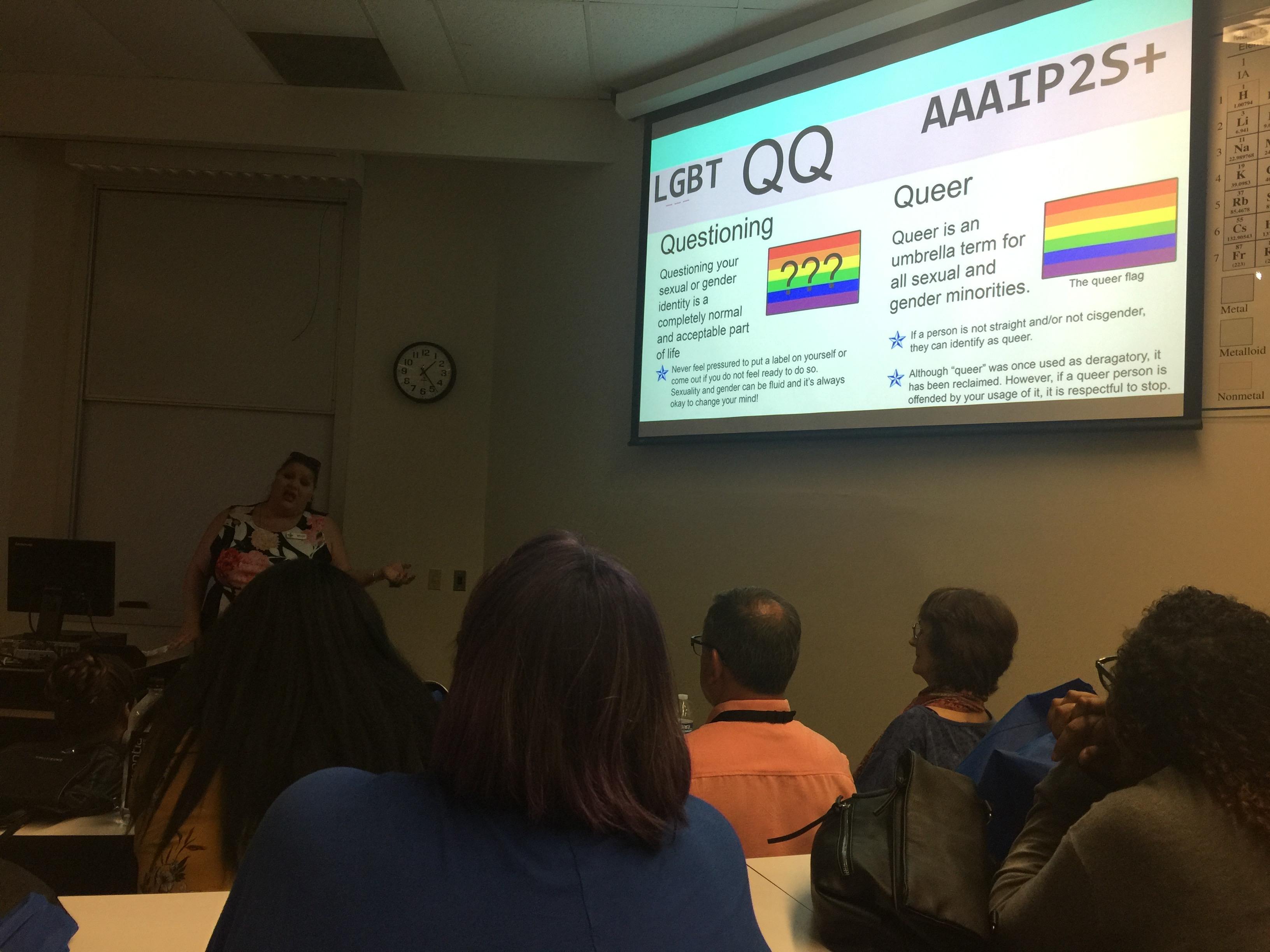 The 2-hour seminar was energetic, enlightening, and I and others were clearly learning with every sentence. I'm no slouch on the LGBTQ+ stuff, but yes, it was clear that there was even more to learn when Misty was done with us. To have one of the largest higher education institution in the nation give its employees the chance to better themselves and try to gain a more inclusive perspective of transgender individuals and the rest of the Queer community, we must say BRAVO! I just wish the space was larger for more to learn. I felt bad that many people were turned away due to limited seating and I did feel a little guilty about taking one of the seats, but I clearly had many things to learn. Thank you Misty.