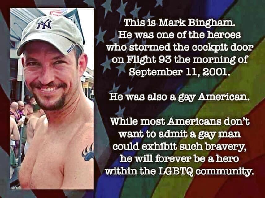 Instead of hitting that target, the plane crashed in a rural field in Pennsylvania. Bingham, a gay man, was one of the passengers, leading the charge to try and stop the terrorists.