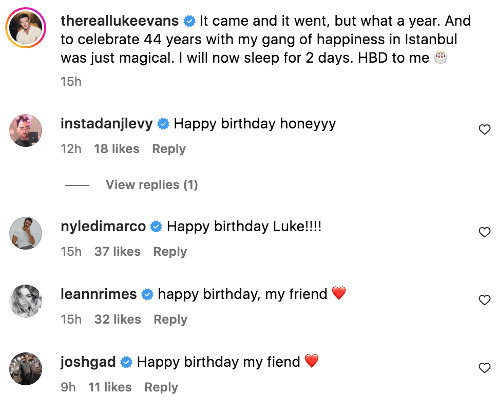 “It came and it went, but what a year. And to celebrate 44 years with my gang of happiness in Istanbul was just magical. I will now sleep for 2 days. HBD to me”.