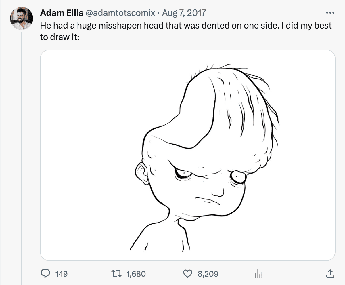 He has been making comics for years now, and they are mostly about witty takes on life in the perspective of a millennial gay man. Not to mention, Ellis is a BuzzFeed comic artist. August 2017 marked the beginning of what he eventually referred to as “Dear David”, which is a series of tweets where he recalled vivid dreams about a ghost child, whom he noted had a “huge misshapen head that was dented on one side.”