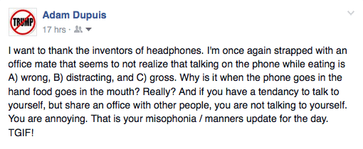 I actually have two sets of headphones at work, one that is plugged into my computer all the time and another for my phone when my computer is starting up / rebooting. When you have misophonia and your office mate sighs every 2 minutes, eats while on the phone, loves apples and chips, and constantly moves around tapping her heels on the plastic chair mat, you have to go to extremes.