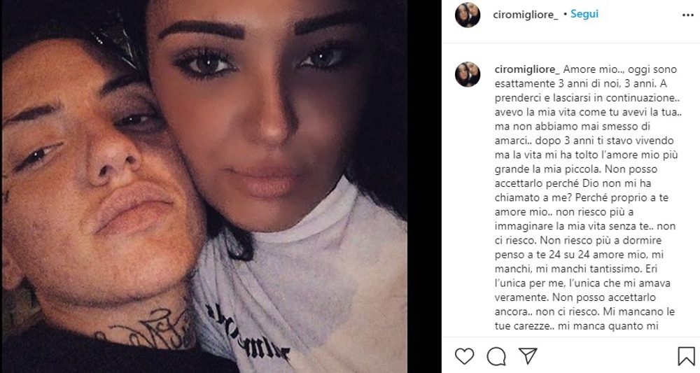 For Ciro Migliore, the partner who survived the crash, the loss of his girlfriend has been a terrible fate.