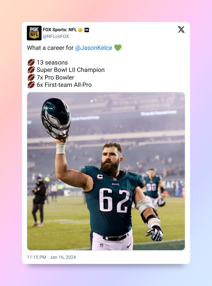 Now, this isn’t Kelce’s first time leaning into his lovable himbo energy. His shirtless Super Bowl antics, his beer-chugging parade appearances, and that time he gave a locker room speech that was somehow both wildly profane and deeply poetic—Jason Kelce is a whole vibe. And while his brand of shirtless patriotism is decidedly straight-on-paper, the gays have taken note.