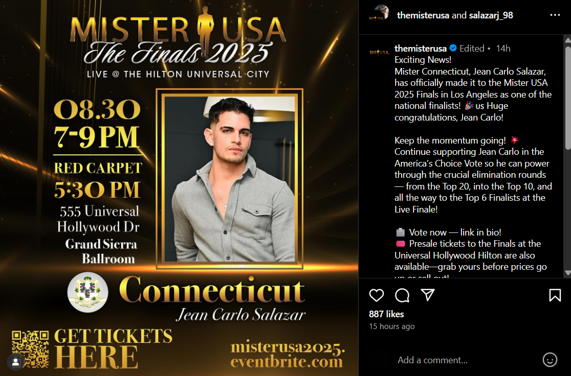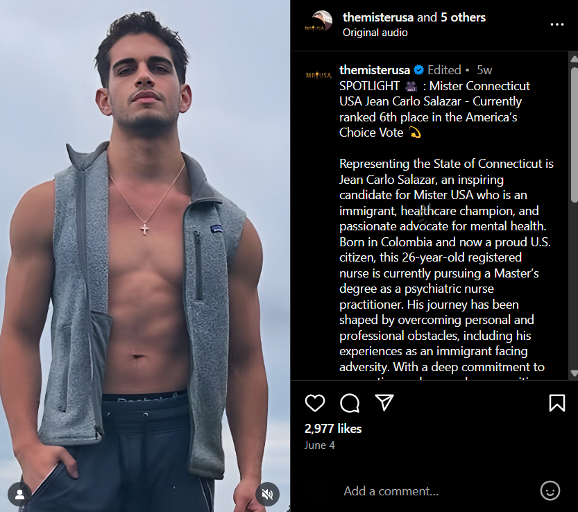 Representing Connecticut in the upcoming Mister USA 2025 competition, Salazar isn’t just a thirst trap in scrubs—though, let’s be honest, he is that too. He’s vying for a crown that’s not about empty aesthetics but about what organizers call “male excellence.” The pageant’s mission? To find an ambassador who is “intelligent, socially aware, and charismatic.” (Having cheekbones that could cut glass? Just a bonus.)