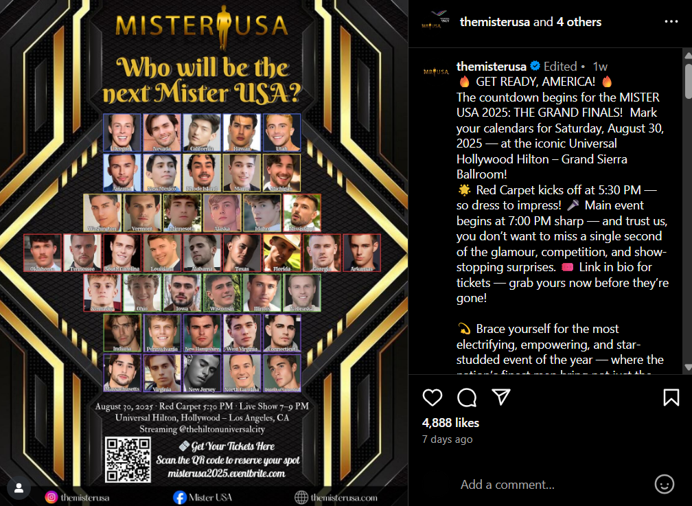 According to Mister USA’s website, “MR USA is the quest for Male Excellence. It is not just about physical appearance; it’s a platform that seeks to identify and showcase well-rounded individuals who possess qualities beyond aesthetics.” That means being more than hot—it means being human, accomplished, and impactful. Contestants, who hail from a spectrum of diverse and cultural backgrounds, are evaluated not just for looks, but for talent, social advocacy, and personal story.