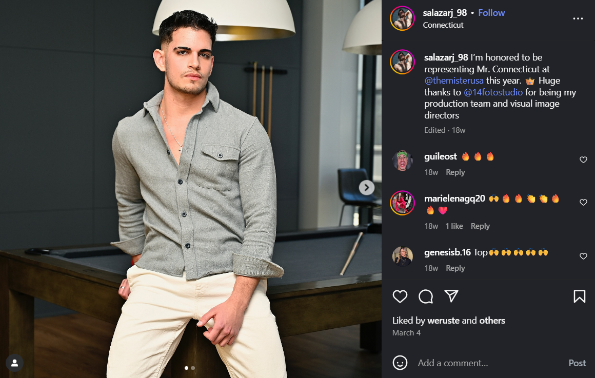 While it’s unclear how many other contestants identify as LGBTQ+, Salazar’s openness—and the warmth he exudes—make him a standout in a competition that’s as much about values as visuals.